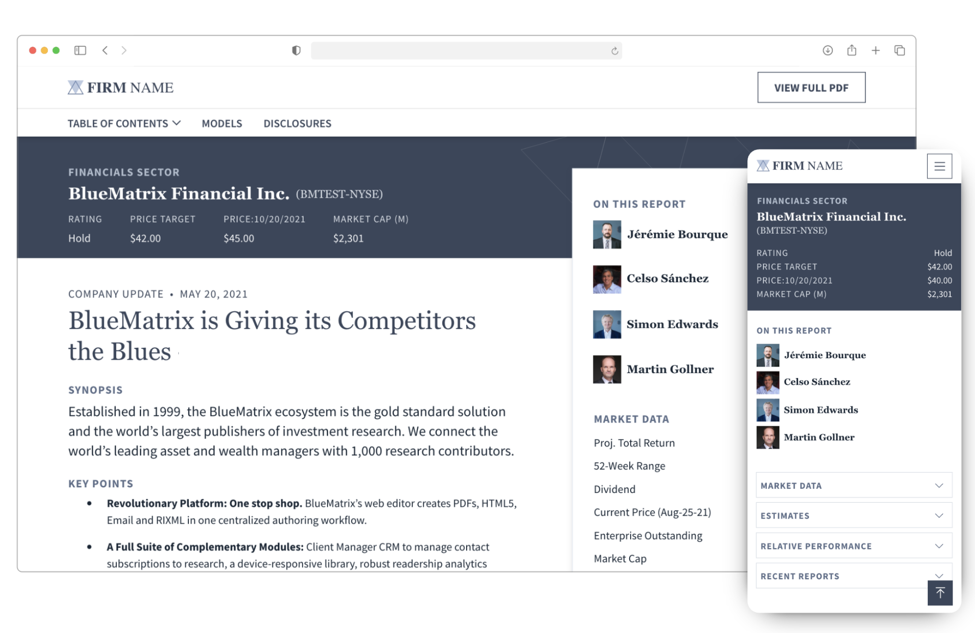 - Enabled dozens of investment banks and boutique research firms to publish branded research at scale